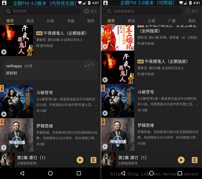 PS:需要注意的是3.9版本的“广播”tab在4.0版本替换成了“书城”tab,而书城tab的页面要远复杂的多,图片也更多。