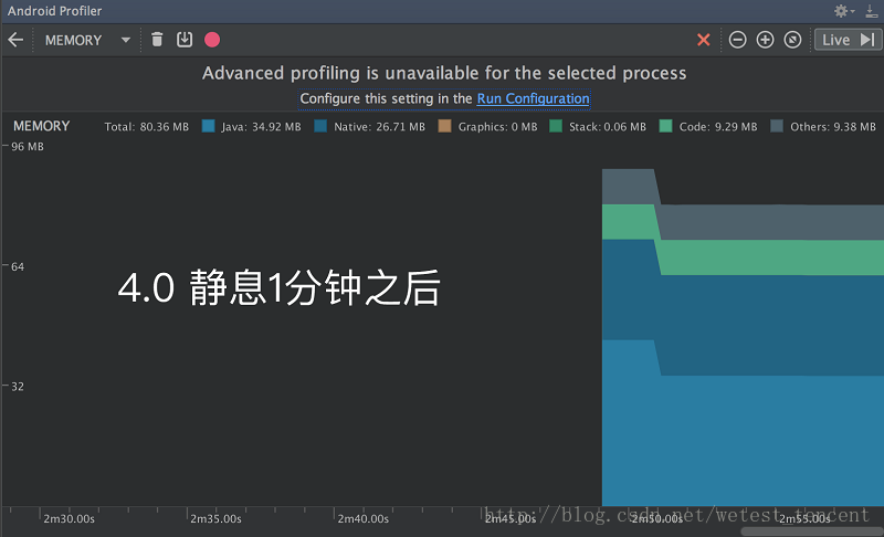 事实上,因为有图片缓存在LRU算法的基础上增加了TTL逻辑,在静止1分钟之后(只要不再加载新图片),4.0版本,内存还会下降。(图片缓存超时主动清理)。
