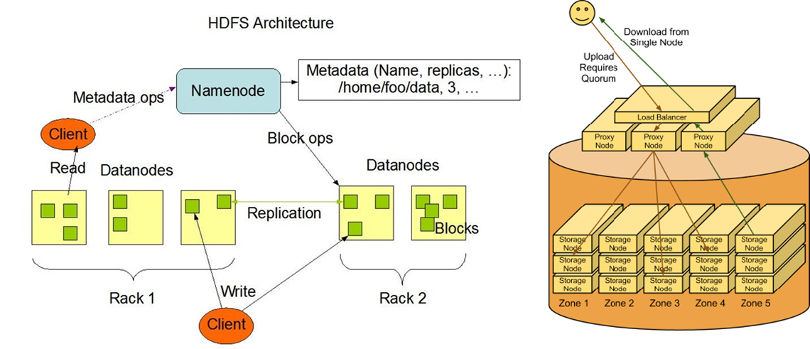 对于数据的存储,一台机器的文件系统肯定是放不下了,所以需要一个很大的分布式文件系统来做这件事情,把多台机器的硬盘打成一块大的文件系统。