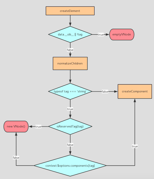 createElement 到底会返回什么呢?其实不是一个实际的 DOM 元素。它更准确的名字可能是 createNodeDescription ,因为它所包含的信息会告诉 Vue 页面上需要渲染什么样的节点,及其子节点。我们把这样的节点描述为“虚拟节点 (Virtual Node)”,也常简写它为“VNode”。“虚拟 DOM”是我们对由 Vue 组件树建立起来的整个 VNode 树的称呼。