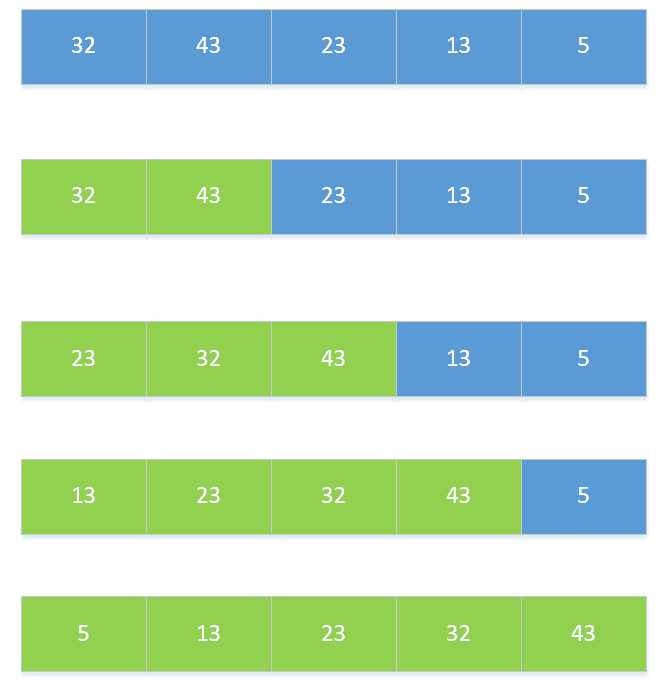 对第四个数、第五个数……直到最后一个数,重复第二步。