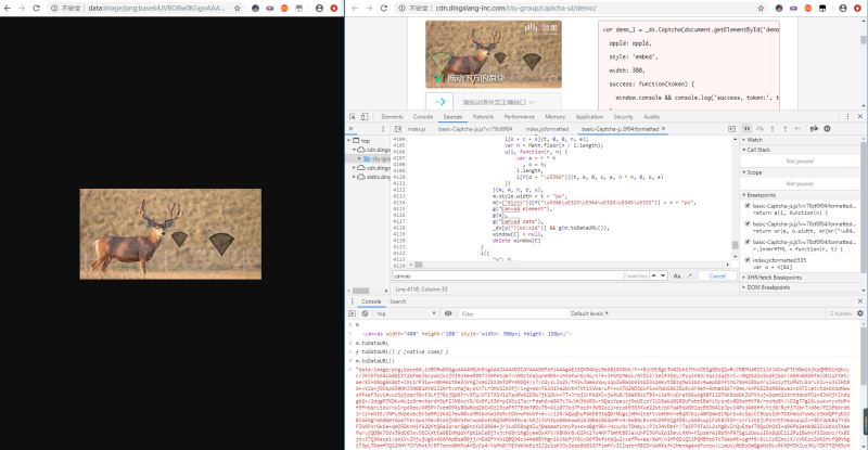 那你应该会想到,那段js中会生成canvas,然后使用它下面的一些方法,实现图片的还原操作,所以我们需要知道他啥时候生成canvas,找到位置,然后慢慢往下调试,找到还原代码。