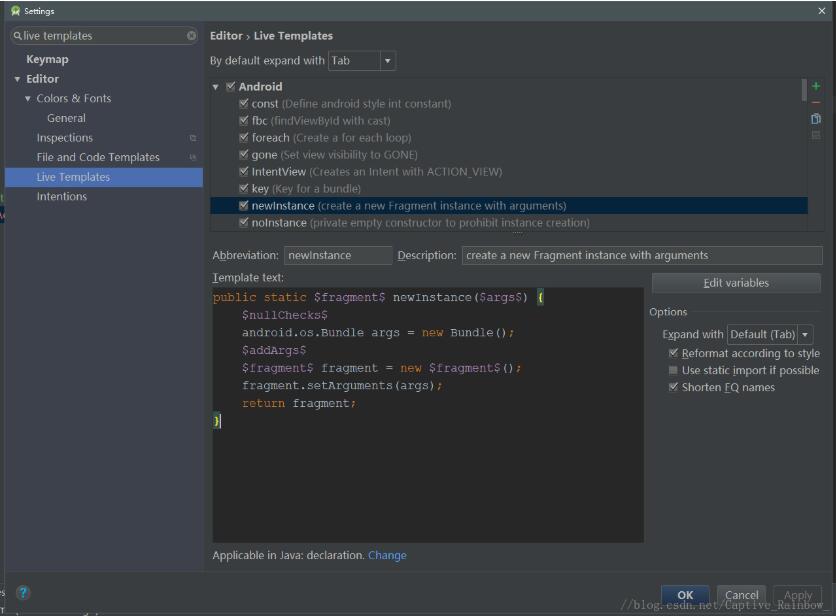 想必大家都知道 android studio 的 live templates 功能,那真是各种方便,比如你想使用 newInstance 去生成一个类的实例: