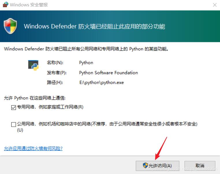 点击允许访问后,在xp网络调试助手上发送消息就可以在python3上正常接收了!!!