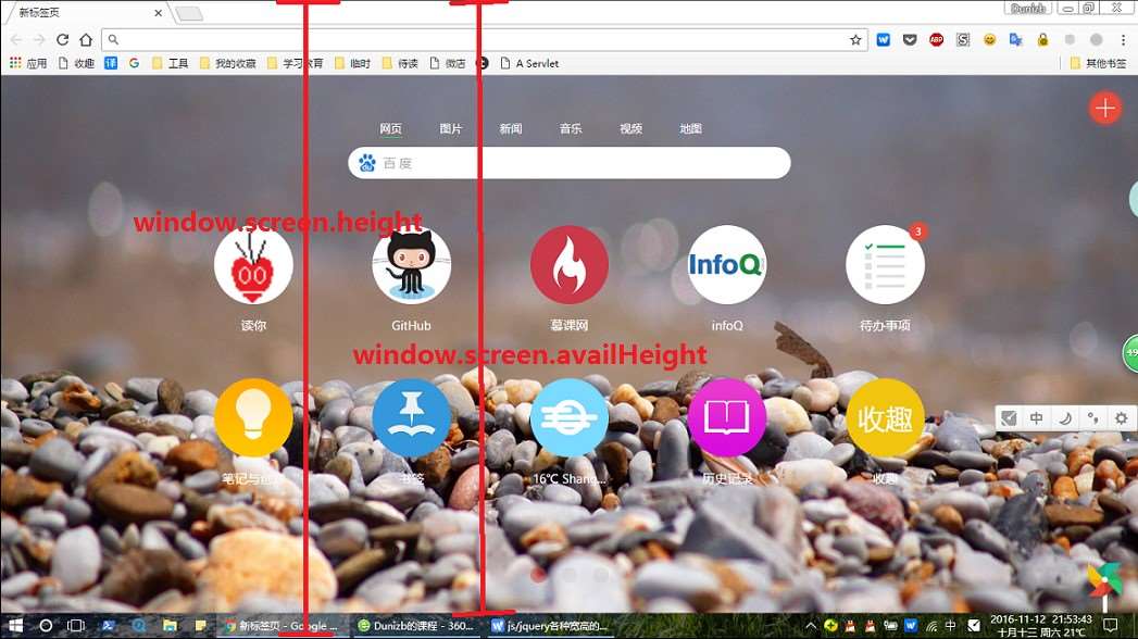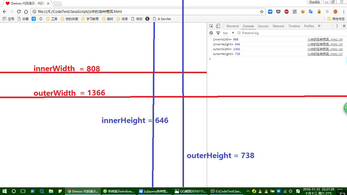 - window.innerWidth,通过字面意思我们知道这是一个内部的宽度