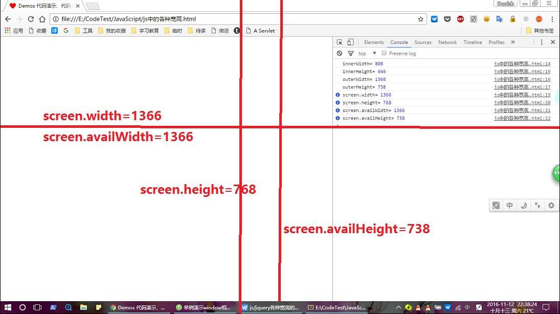 挂靠在window下的宽高还有window.screen, window.screen包含有关用户屏幕的信息。它包括: