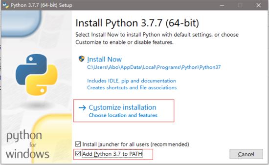- 选择 Install for all users ,把 Python3.7设置为全局环境。