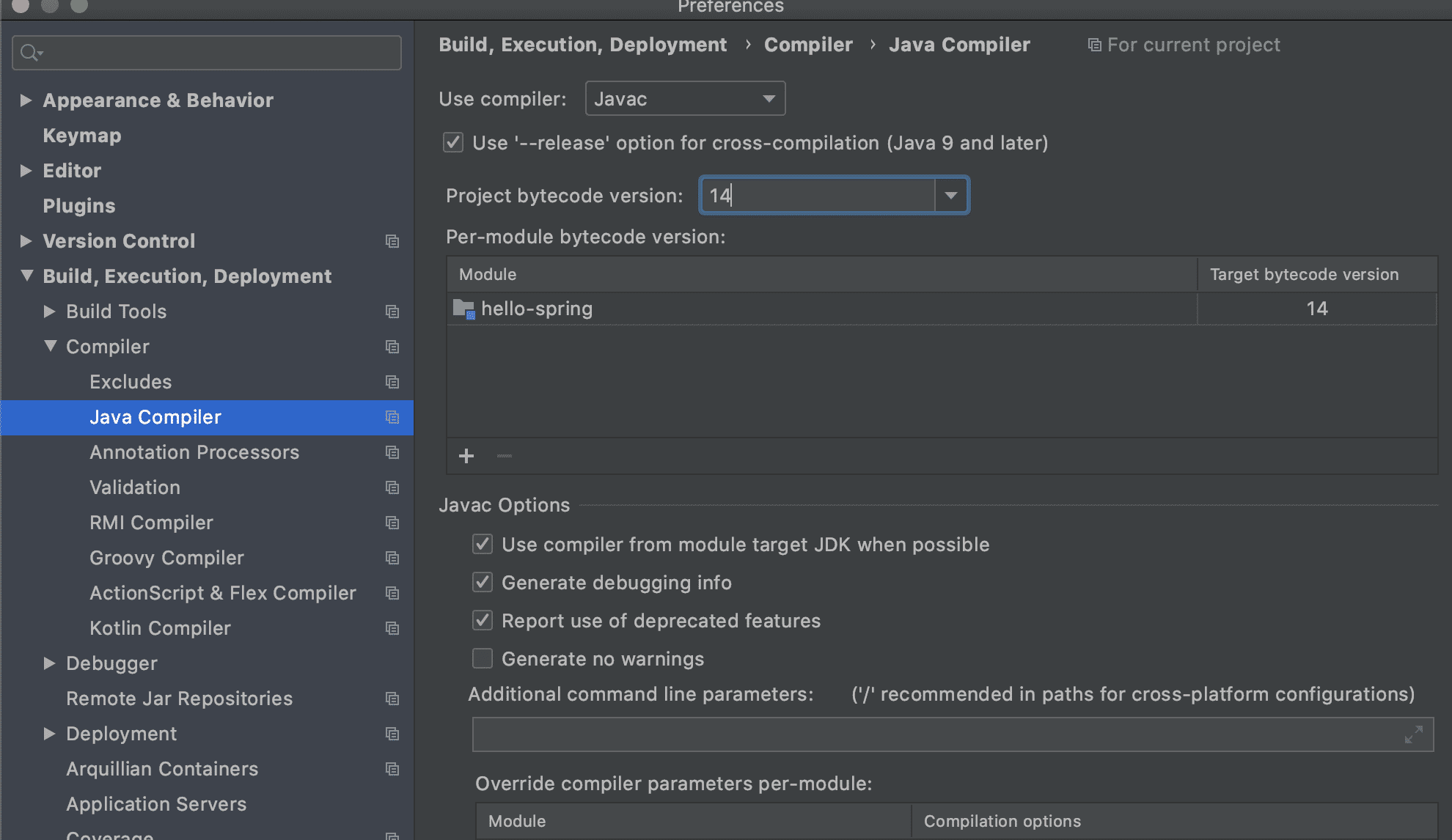 将build -> java complier中的两个版本选择成跟本地一致,这里是14