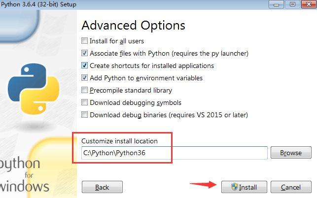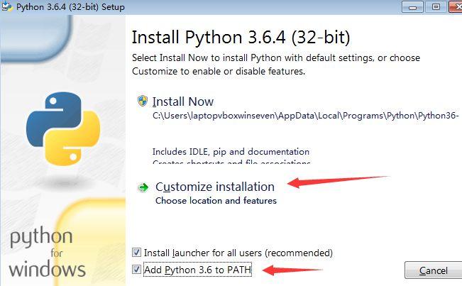 要勾选选项 Add Python 3.6 to path, 然后点击 Customize installation