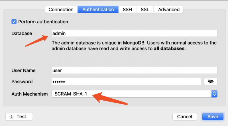 注意下面Auth Database为鉴权的数据库,默认为admin。