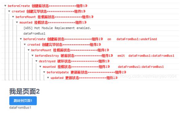当从页面1跳转到页面2的时候,控制台的打印情况如下:
