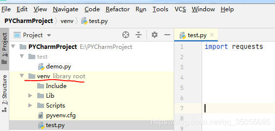 (我的其中一个包requests在虚拟环境中,转移到虚拟环境中创建脚本导入requests成功。)