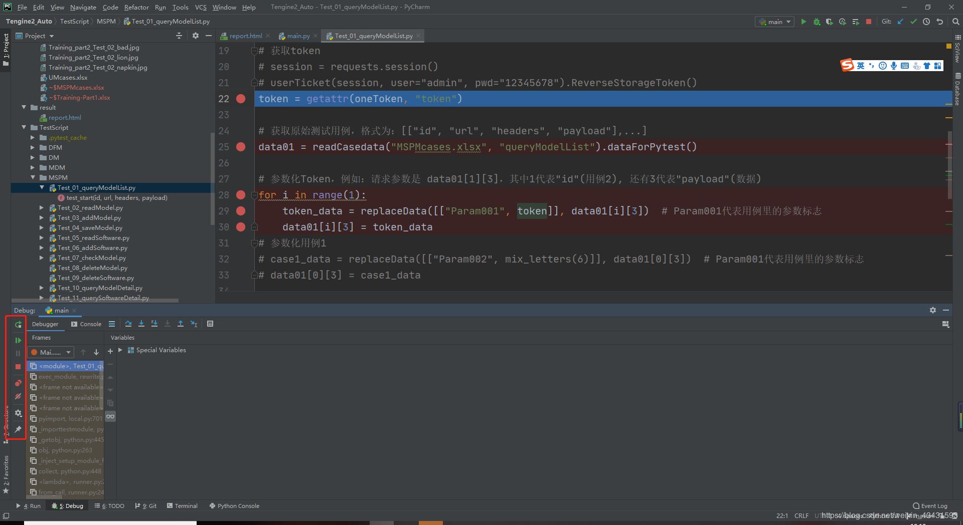 如图,是pycharm的断点,只需要单击左侧,即可定义该断点,和其他开发软件一样方便。断点的作用是:但程序采取debug方式运行时,程序走到这里,将会停下脚步,展示该断点的详细信息。