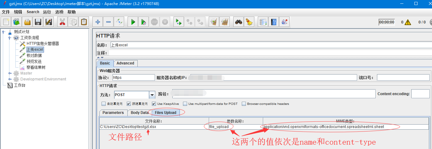 有接口文档的话,那就对着文档写,没api文档,就自己抓包看了。(注意:我在线程组下面加了http信息头管理器是因为我下面的“核对数据”和“预览发送”两个步骤需要这个Content-Type,单单的上传文件是不需要这个组件的,加了反而可能会报错)