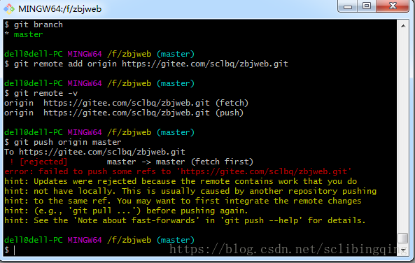 hint: See the 'Note about fast-forwards' in 'git push --help' for details.