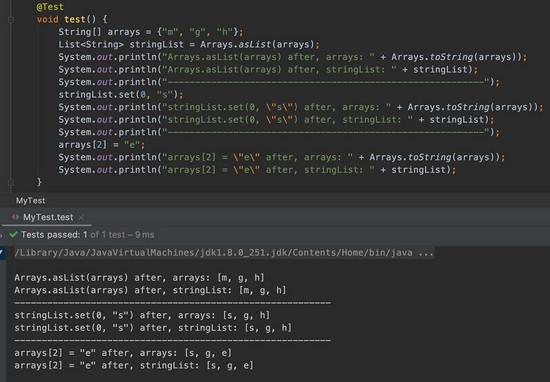 第二个坑,Arrays.asList 方法返回的新 List 和该方法原始入参数组修改会相互影响