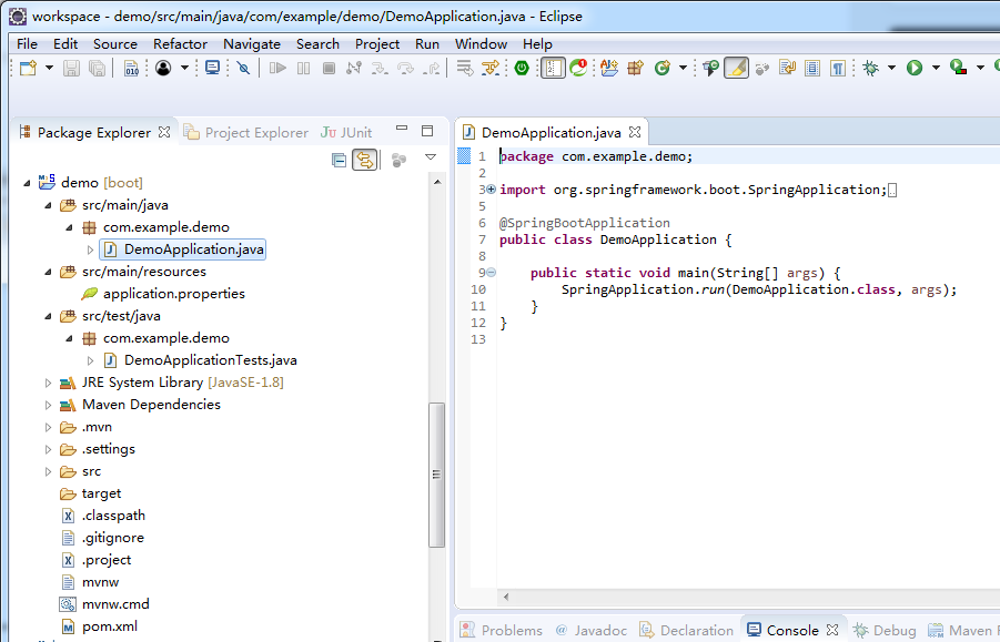--DemoApplication.java 主程序的入口,从这里执行运行,类似Java的Main函数入口