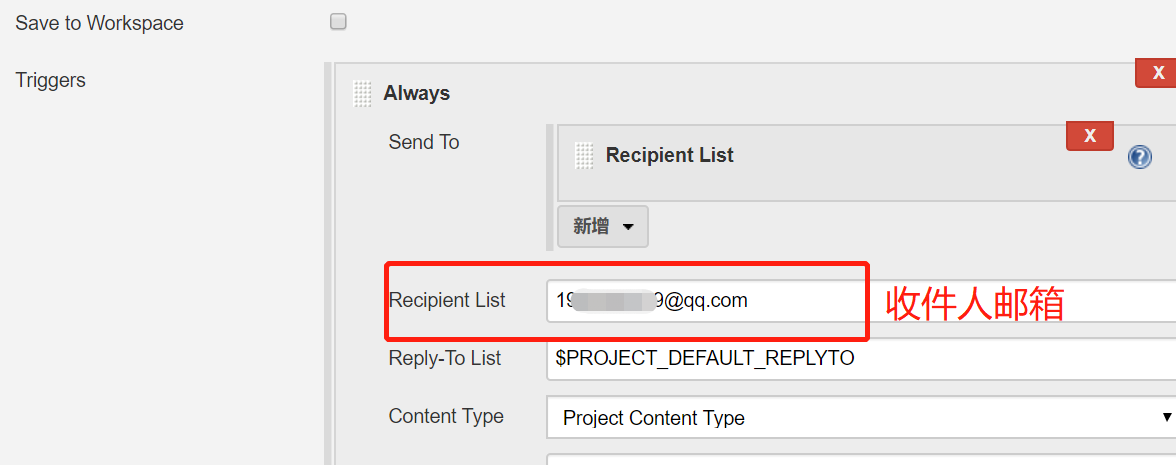 - 如果 Jenkins 系统配置中配置了Default Recipients(默认接收人)则下图中 Recipient List 中不需要输入收件人邮箱地址