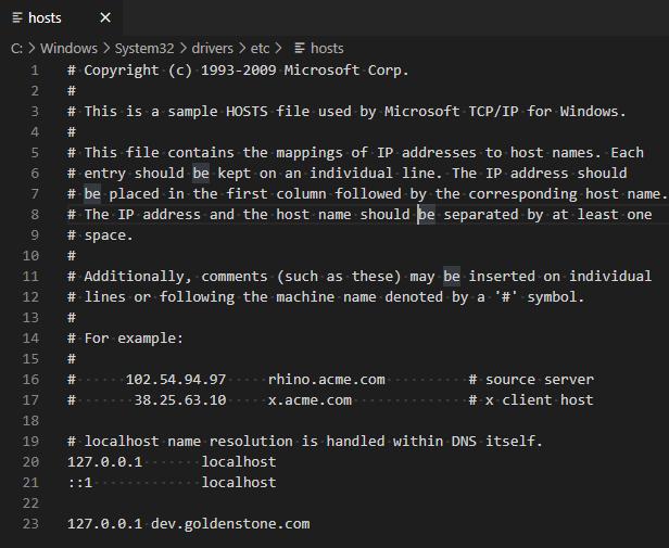 修改hosts文件,增加:dev.goldenstone.com 127.0.0.1