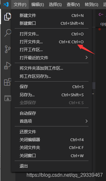 在VSCode中点击 文件,选择刚才创建的文件夹打开
