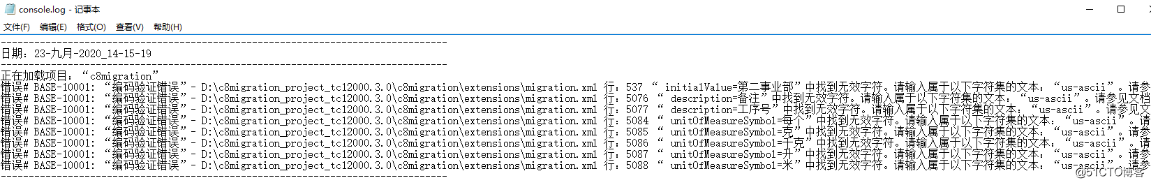 错误# BASE-10001: “编码验证错误”- D:\c8migration_project_tc12000.3.0\c8migration\extensions\migration.xml 行:5076
