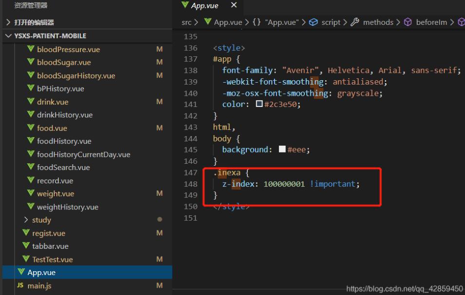 3、每个页面有一个私有样式scoped,因此类名inexa的层级写在app.vue里