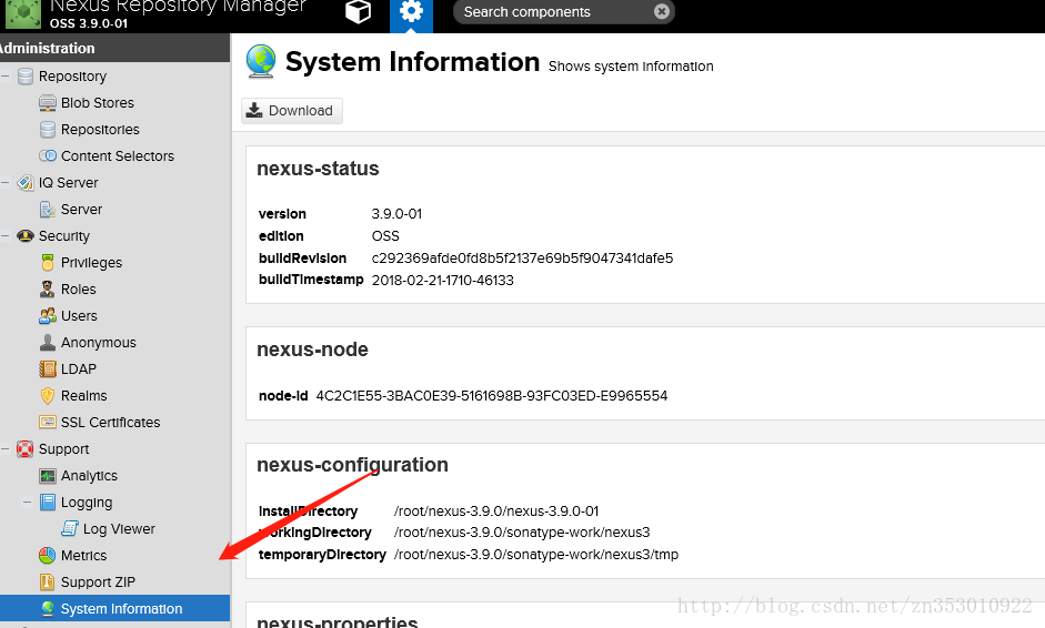 其次,上传至服务器:/root/nexus-3.9.0下,执行:tar -zxf nexus-3.9.0-01-unix.tar.gz