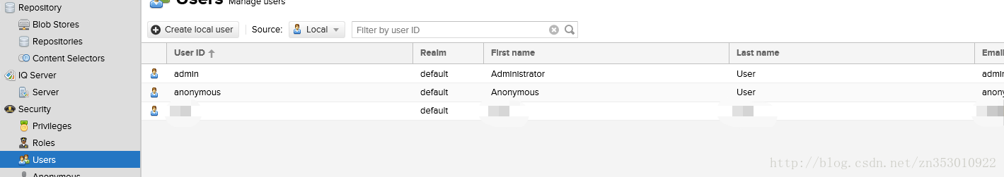 这里主要是用户、角色、权限的配置(上面已经提到了在这里添加用户和角色等)