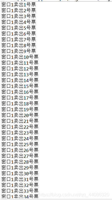 // Thread.sleep(100);//结果输出只有窗口1卖了所有票如图2所示
