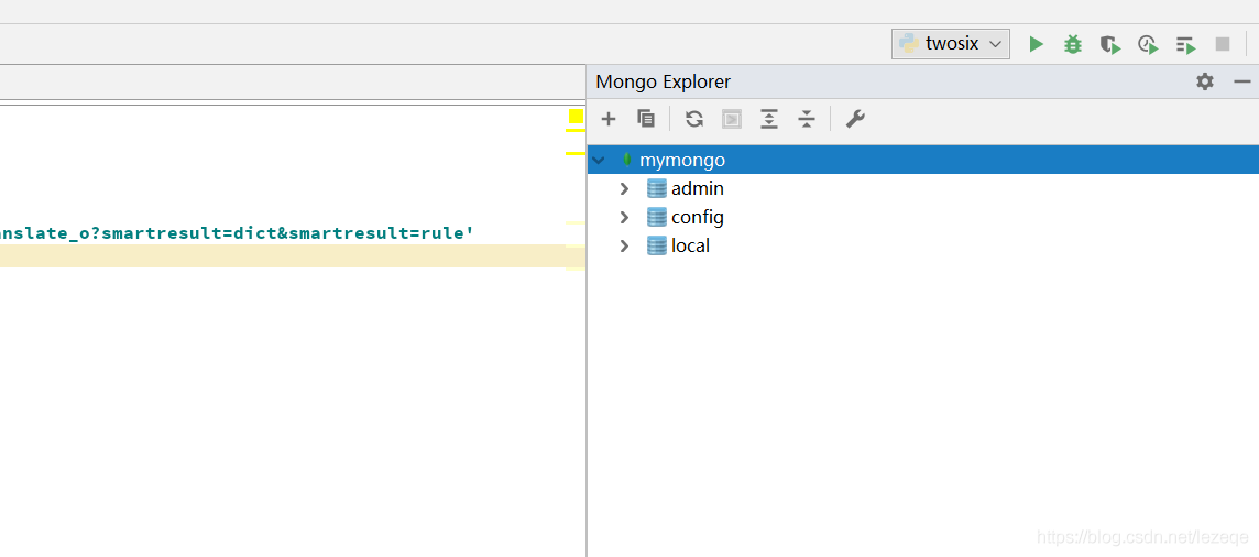 >>>重启之后,点左下角有个页面重叠的图标,点击mongo explorer(图2)