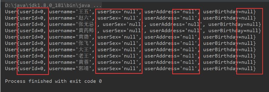 由于之前咱们的列名与属性名是一样的,因此框架进行了自动的识别。