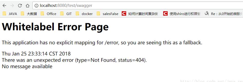 2:我配置的是RequestHandlerSelectors.basePackage(“com”),但API还是只显示一个,而且不显示Controller直接访问地址也报错,如图所示: