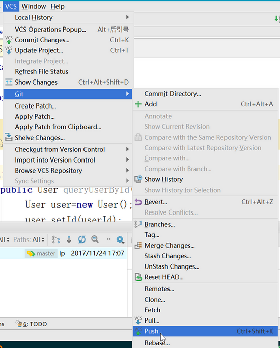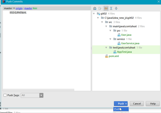推送成功后显示idea 左下角工具栏处出现推送成功消息提示