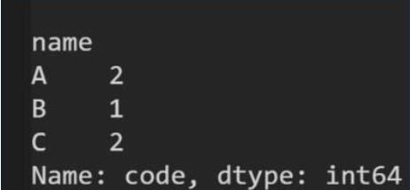 # 以name 分组后,统计code的不重复数目