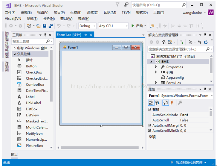 选择“Windows窗体应用(.NET Framework)”、输入项目的名称、选择保存路径,然后单击“确定”按钮,即可创建一个Windows窗体应用程序。创建完成的Windows窗体应用程序如图8.2所示。