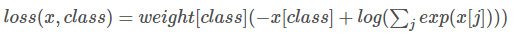 loss_func = NLLLoss(weight=torch.from_numpy(np.array([0.03,0.05,0.19,0.26,0.47])).float().to(device) ,size_average=True) loss = loss_func(output, target)