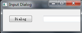 在以上的代码中,主要是在界面中添加了一个按钮(btn),一个编辑框(le),一个按钮响应函数(ShowDialog),其中在ShowDialog响应函数中打开了一个标准输入窗口,并将标准输入窗口中输入的值显示到编辑框(le)中。
