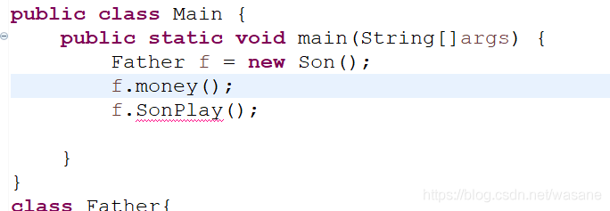 假如我要该引用区调用子类特有的方法(不是覆盖重写)呢? 会报错 (下面的向下转型就是解决这个问题)