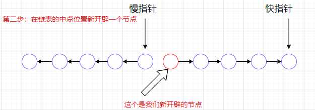 此时慢指针继续向后走,同时开辟一个新节点往前走,看下图