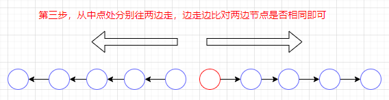 判断链表中点前后是否相同,达到判断回文串的目的,如下图所示