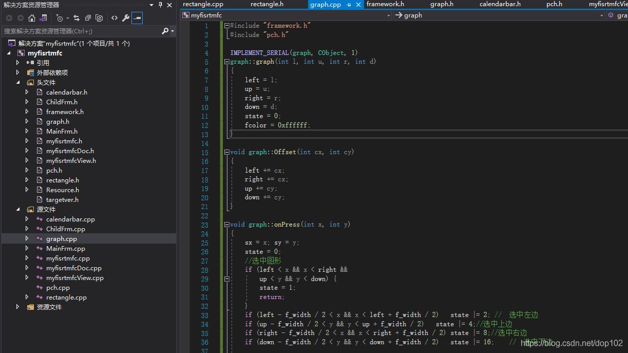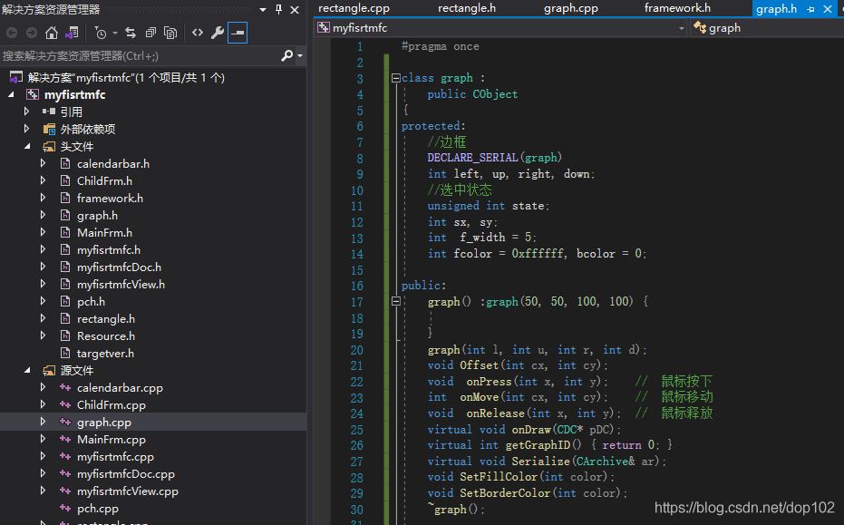 跟上面的步骤一样,见一个rectangle.h和rectangle.cpp