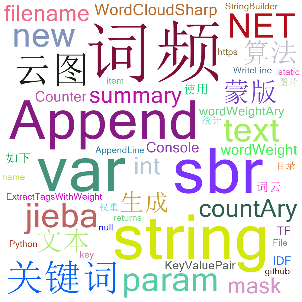 网上大部分文章介绍的是使用Python的jieba、wordcloud的库生成词云图,本文则介绍在C#中如何使用jieba.NET、WordCloudSharp库生成词云图,后者是前者的.NET实现。