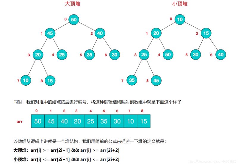 简单解释: 构建好大顶堆或小顶堆结构,这样最上面的就是最大值或最小值,那么我们取出堆顶元素,然后重新构建结构,一直取,一直重新构建,那么最后达到排序的效果了。