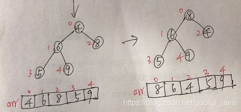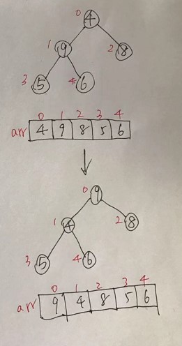 //当for循环结束后,我们已经将以i为父节点的树的最大值,放在了最顶,完成局部大顶堆
