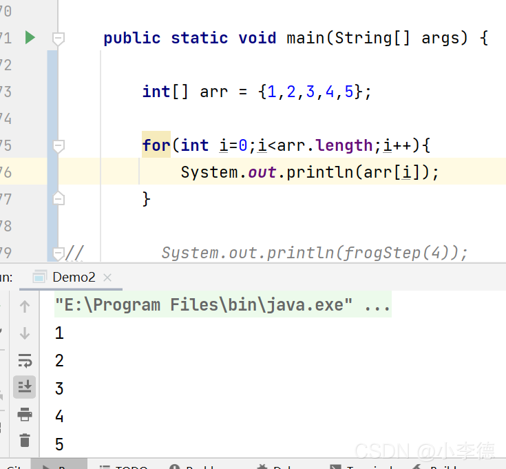 对于数组的长度来说,在进行开辟数组空间的时候就已经确定了,但是在数组长度定义的问题上这里和c/c++有不同的区别,在Java中可以使用变量来进行数组的初始化,例如下面的代码,在Java中是被允许的。