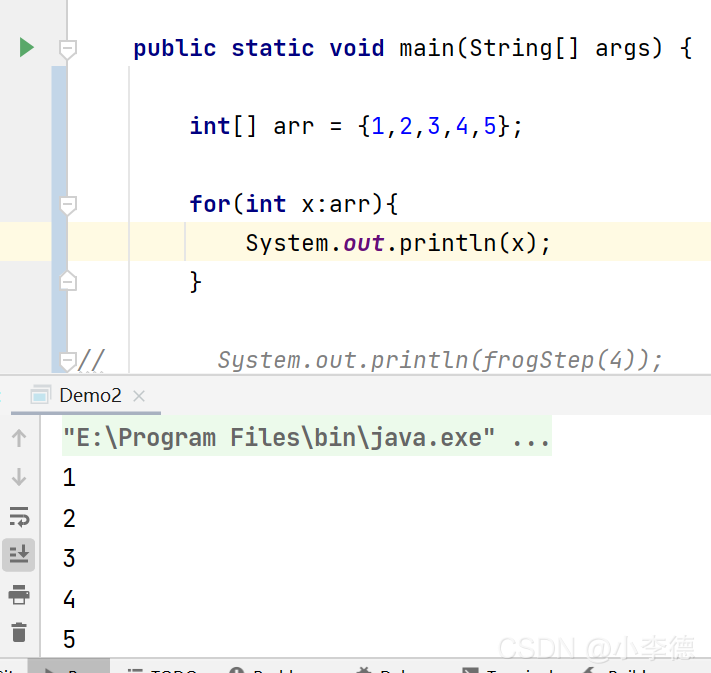 对于数组的创建,这里和c/c++还是有些不同的,这里创建数组的方法共有三种方法,下面就以数组里面元素为int类型,数组大小为5的举例,如下所示: