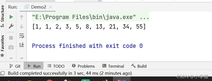 在之前学过的返回值都是基本数据类型中的返回值,在学过数组之后,我们知道引用类型也有返回值,接下来我使用返回值来求一个存放斐波那契数列结果的数组,如果所需要的数组大小<=0,则返回null,否则返回一个数组。