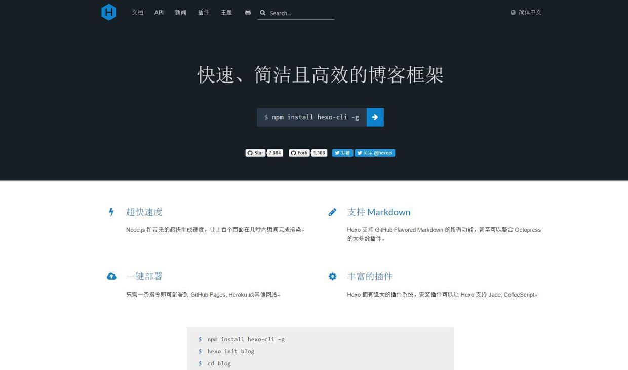 Hexo 是一个轻量的静态博客框架。通过Hexo可以快速生成一个静态博客框架,仅需要几条命令就可以完成,相当方便。