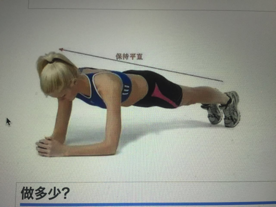 有的朋友会问这个是不是平板支撑啊,也不是平板啊,我们要了解我们的目的,是练习腹横肌,所以要结合目的去做,向上收一些肚子,甚至整个中间的部位往上摆一些,都没有问题。
